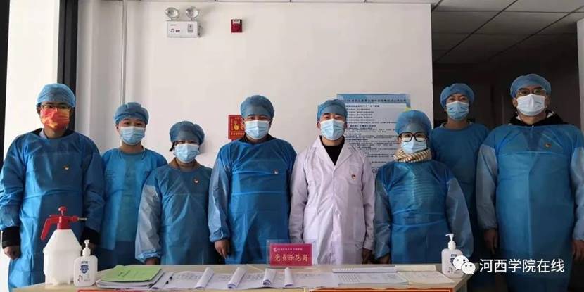 一名党员一面旗帜,把表率做在最前沿。学院组织各方力量,成立“党员突击队”、“党员志愿服务队”,积极推进党员示范岗建设,引导党员干部在行动上、岗位上以身作则,带头强化政治担当充分发挥党员先锋模范作用。组织党员干部亮身份、当先锋、树旗帜、作表率,全力投入到疫情防控第一线,做到“五个带头”和“六个在前”,即带头站在防控斗争第一线,带头发扬无私无畏精神,带头做好群众思想工作,带头顾全大局,带头坚守岗位;人员排查走在前、人员管控跟在前、设卡检查挡在前、应急处置冲在前、热心服务群众跑在前、文明示范做在前,大力宣传普及疫病防控知识,教育引导学生增强自我防护意识。团结和带领广大青年学生凝聚共识、坚定信心、共克时艰,成为疫情防控第一线的榜样标杆。