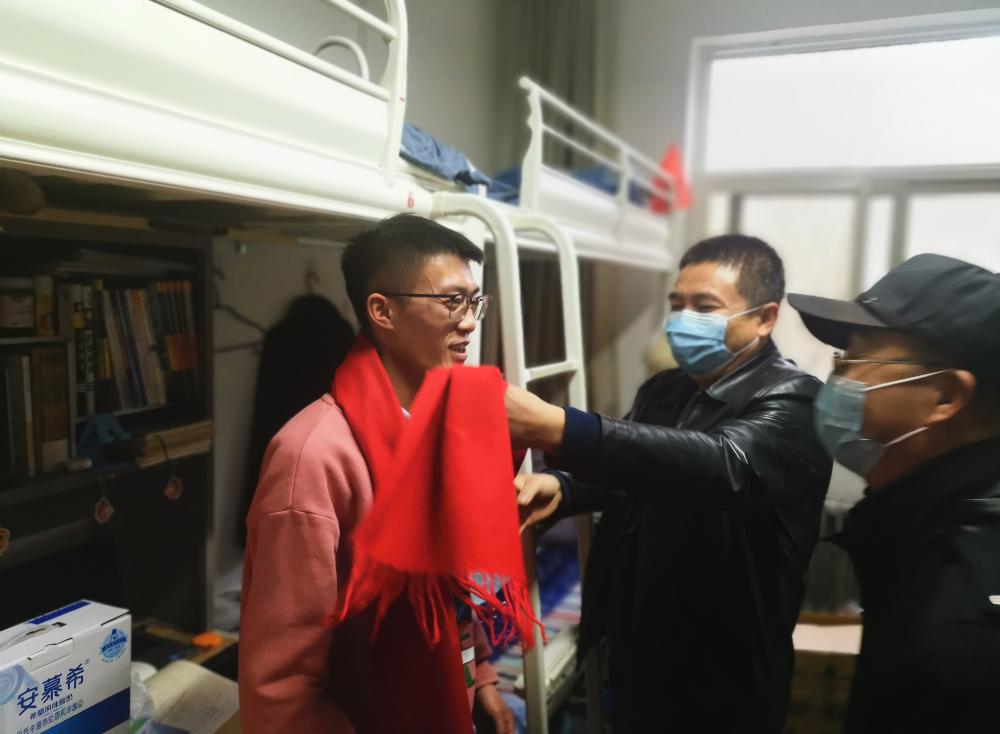 11月28日下午,yabo888vip网页版登录党政负责人一行到南区一号公寓看望勇救落水儿童的见义勇为大学生赵宏瑜,并送上慰问品,对他们见义勇为救人的善举给予高度赞扬。